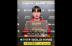 2月10日讯 T1战队新AD选手Smash获Gold King称号,Smash在发表获奖感言时表示自...